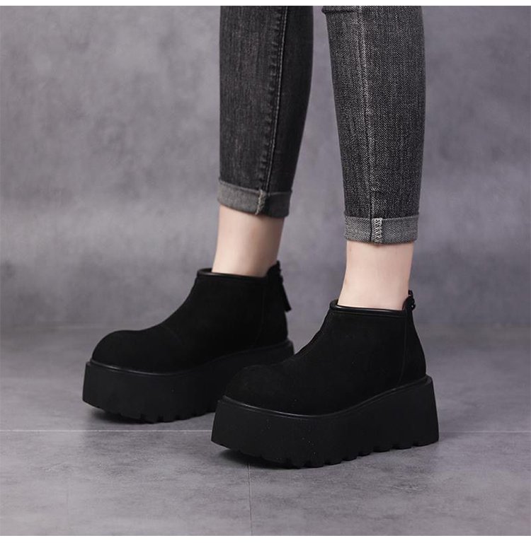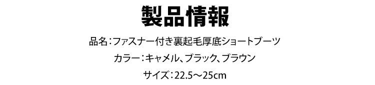 ファスナー付き裏起毛厚底ショートブーツ
