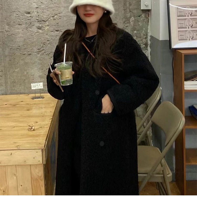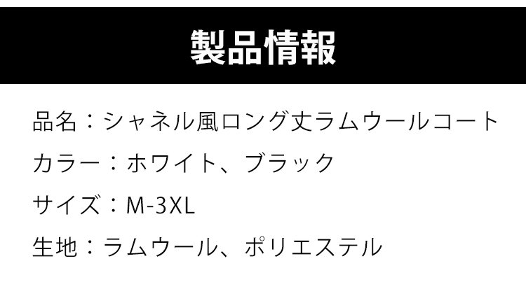 シャネル風ロング丈ラムウールコート
